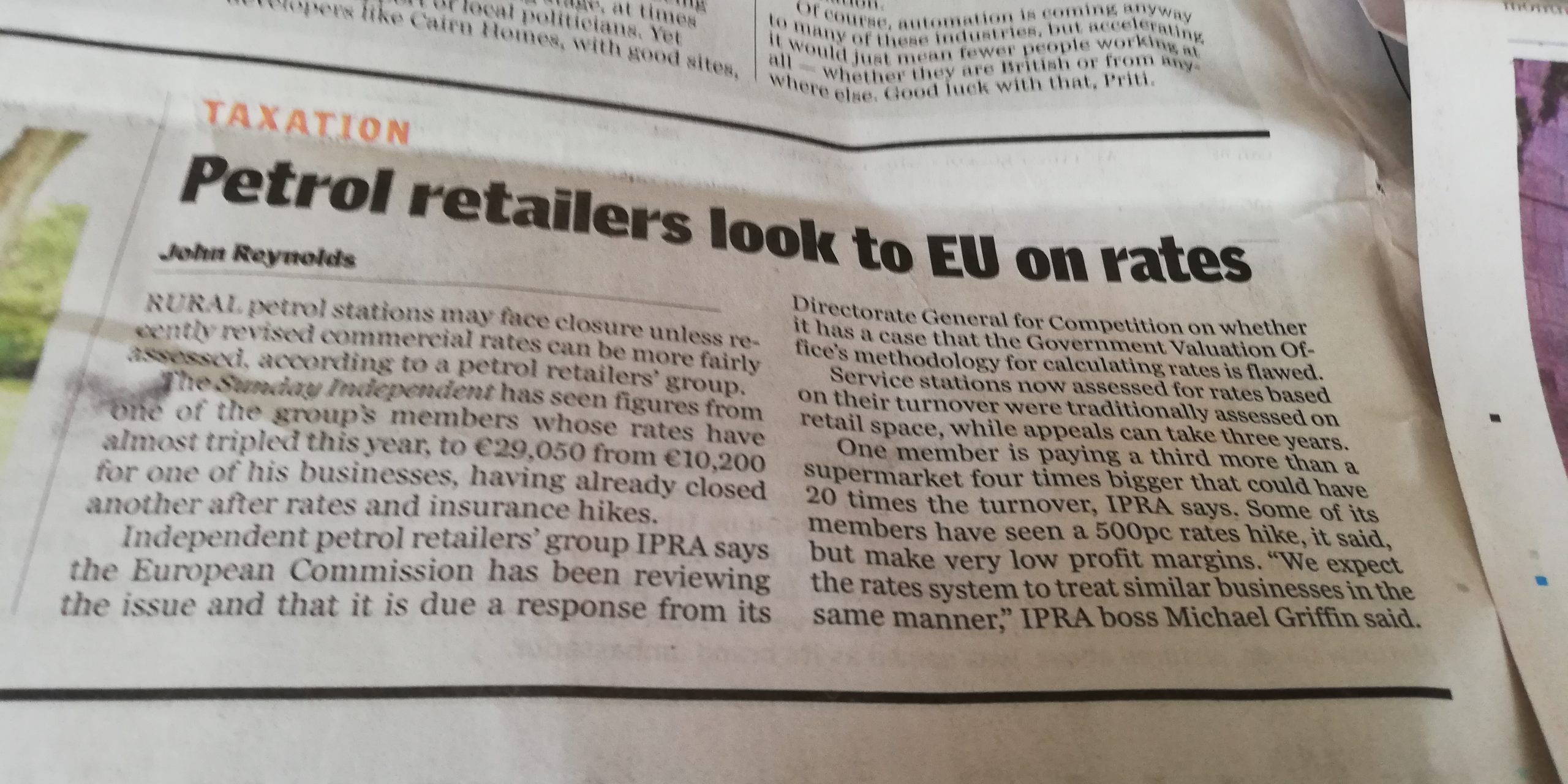 Good coverage by John Reynolds in the Sunday Independent on the Rates issue and our discussions with the EU competition directorate.